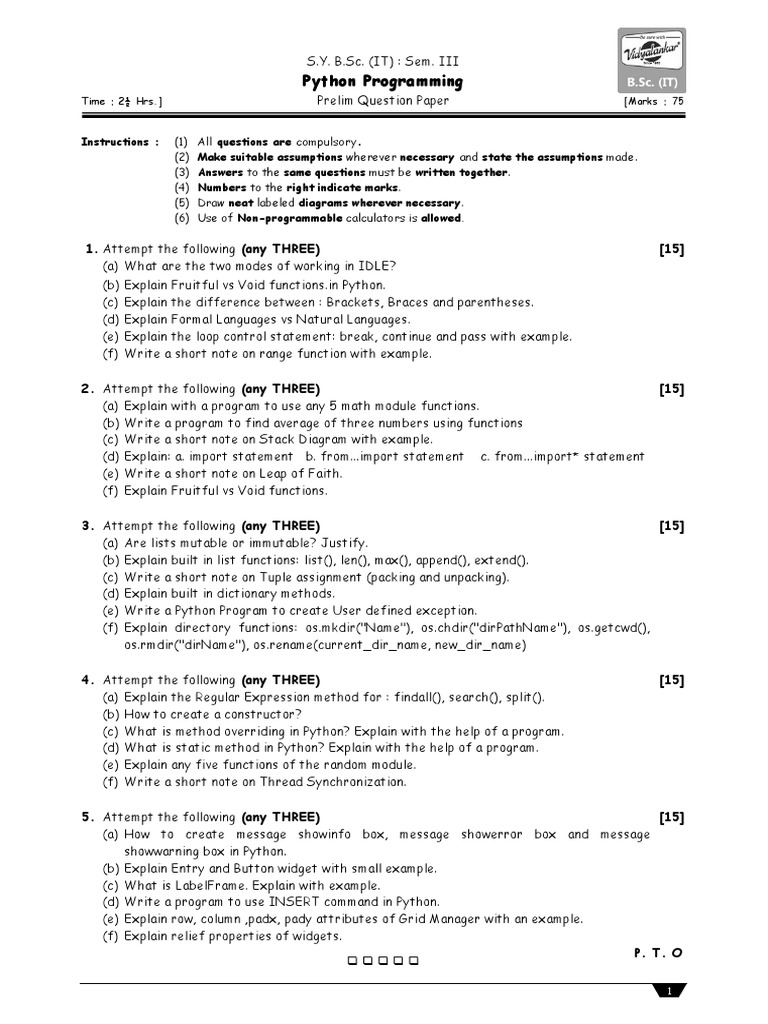 Python Programming - First Sem Exam Sample Paper 2023 - Studocu