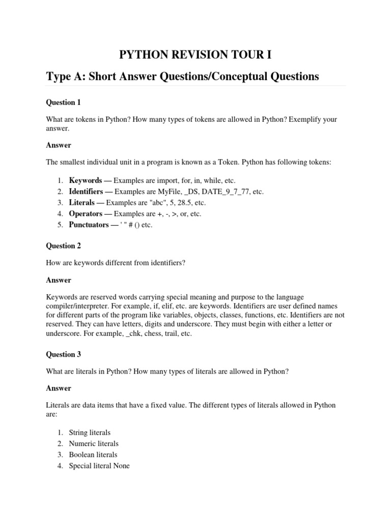 Chapter 1 Python Revision Tour | PDF | Python (Programming Language ...