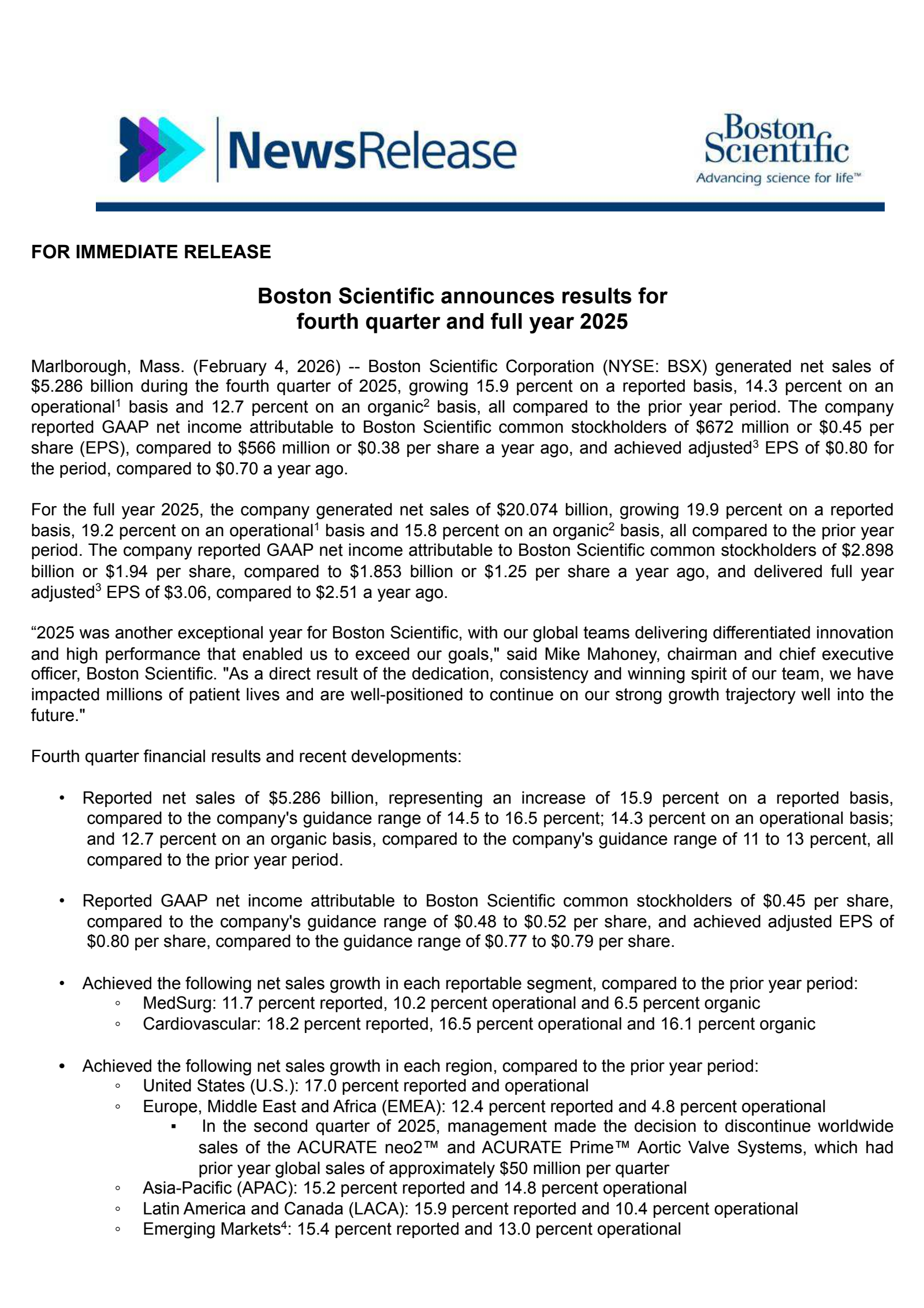 BSX Q4 2025 Earnings Report on 2/4/2026