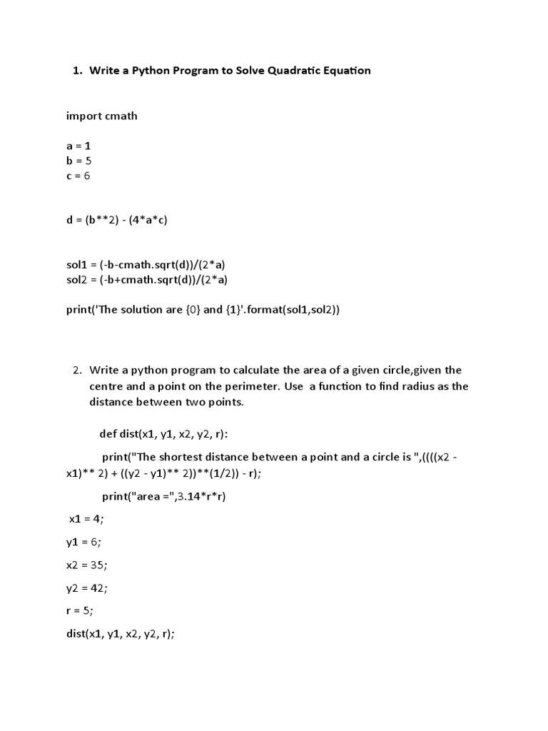 Quadratic Equation in Python ProgramQuadratic Equation Code in PythonFinding Roots of Quadratic Equation in PythonQuadratic Equation in Python SimpleSolve Quadratic Equation in Python BlocksHow to Solve an Equation with PythonSolve Quadratic Equation in Python CodingPython Program to Find Quadratic EquationQuadratic Equation Progreamm PythonQuadratic Equation Formula in PythonSolve Equation in Python GitHubSolve Quadratic Equation Using PythonQuadratic Equation Root Code PythonPython Algorithm to Solve a Quadratic EquationPython Program to Solve Matric CalculationsSolve Quadratic EquationsPython Input Quadratic EquationQuadratic Roots Program in Python in WingQuadratic Equation Formula for PythonPython Code to Solve System of EquationsPython Quadratic Equation SolverPython Flowchart to Solve a Quadratic EquationQuadratic Equation Written in PythonQuadratic Equation Python ExamplesPython Quadratic Equation Solver App with GUIHow to Write Quadratic Equation in PythonFlow Chart Quadratic Equation in PythonSolve Complex Number Quadratic Equation Using PythonPython Program to Convert Kilometers to MilesDesign and Implementation of a Quadratic Equation Solver CircuitHow to Make an Equation in PythonPython Program for Quadratic Equation IdleA Quadratic Equation ExampleFind Quadratic Equation in Python Using ClassCh5 Program 5 Quadratic Equation with Functions PythonDo You Solve Equations in Python Left to RightWrite Pyhon Program to Solve Equation with Second-DegreeHow to Solve a Quadratic Equation Using Discriminant in Python SimpleSquare Root Equation in PythonHow to Solve for X When Given Y in PythonPython Program to Calculate the Roots of Quadratic EquationHow to Do Quadratic Equation On Python with Import MathPython Equation Solver Isolate a VariableCoding a Quadratic Formula Calculator in PythonPython Code for Solving Quadratic EquationsHow to Put Quadratic Formula in PythonImaginary Roots of Quadratic Equation Formula in PythonQuadratic Equation for the Pyramid Structure PythonBasic Program On Quadratic Almighty FormulaHow to Solve Algebraic Equations in Python