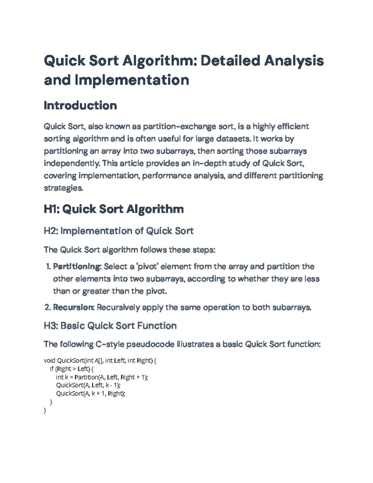 Understanding Quick Sort: Analysis and Implementation Guide | Course Hero