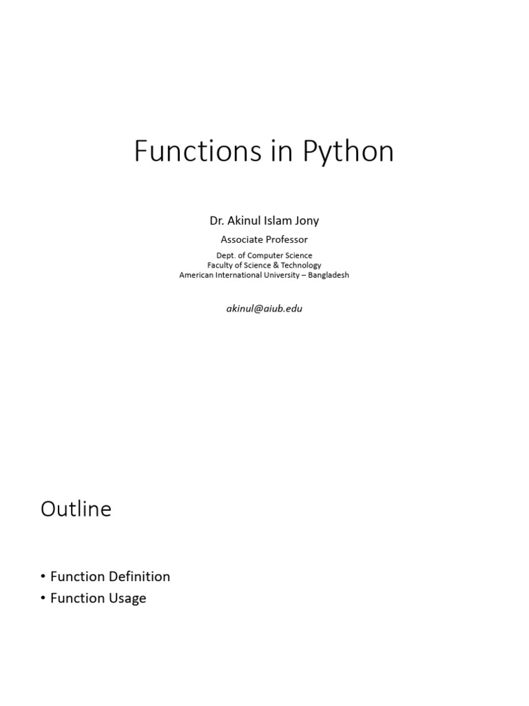 Based on this image's title: “Introduction to Function in Python Programming Language | Amulya's Academy