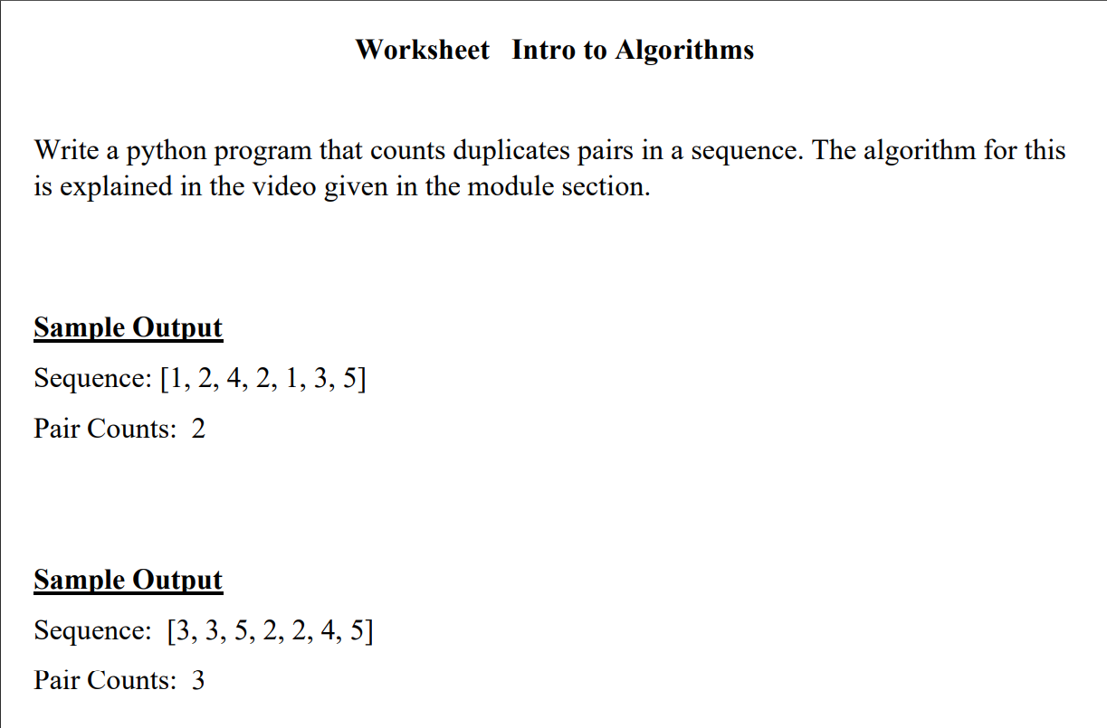 Solved Worksheet Intro to Algorithms Write a python program | Chegg.com