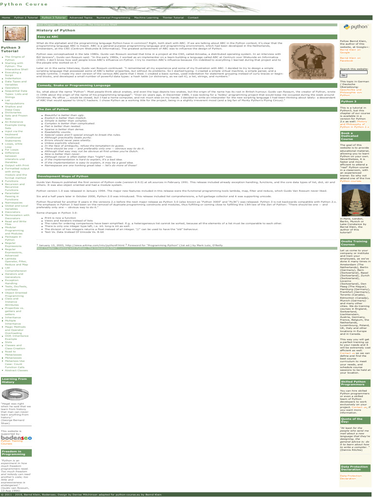 Python Tutorial - History and Philosophy of Python | PDF | Python ...