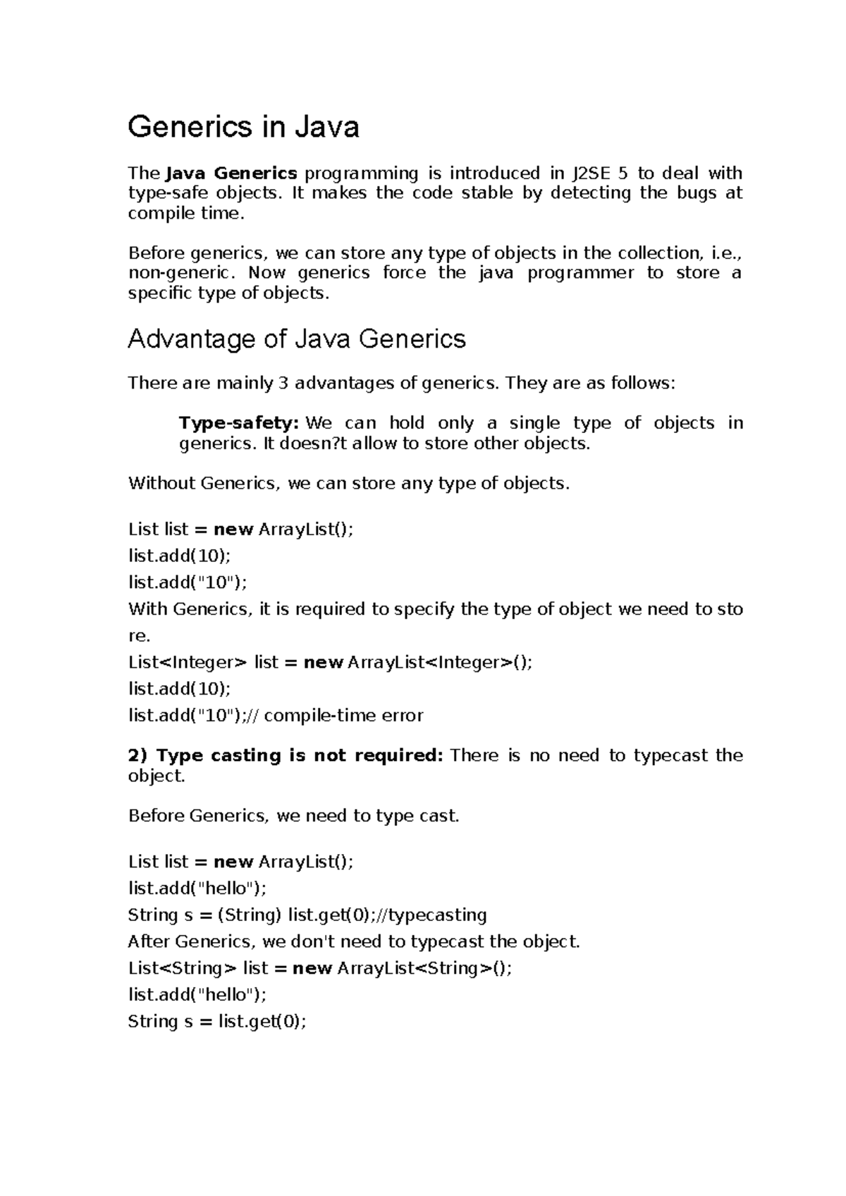 Generics in Java - NOTES - Generics in Java The Java Generics ...