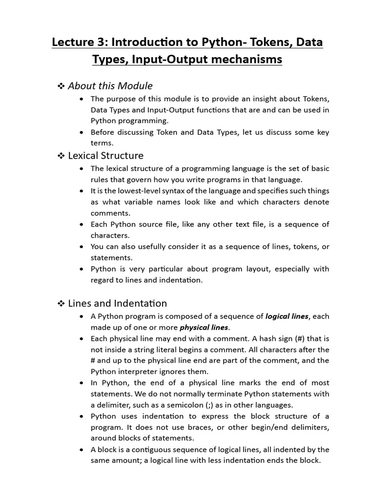 Lecture 3 Variables- Data Types- Input-output Mechanisms | PDF | Python ...