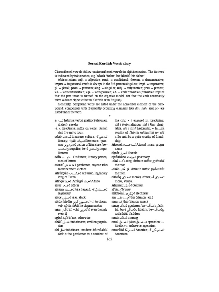 Kurdish Sorani Vocabulary | PDF | Verb | Morphology