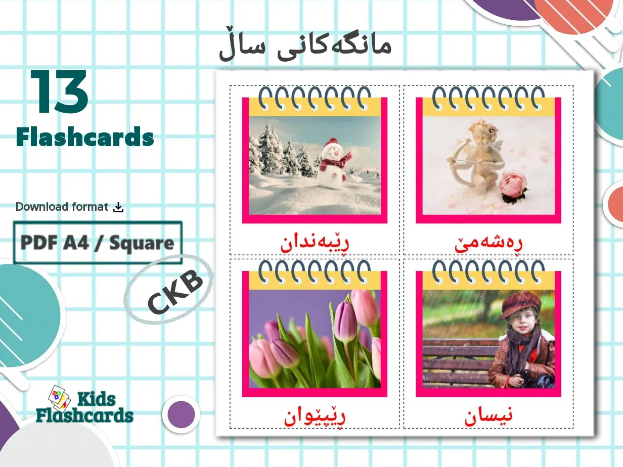 13 Printable Months of the Year Flashcards in Kurdish(sorani) (Free PDF)
