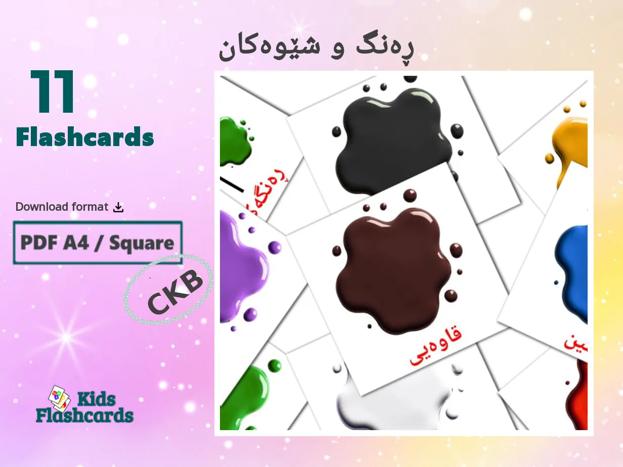 11 Printable Colors Flashcards in Kurdish(sorani) (Free PDF)