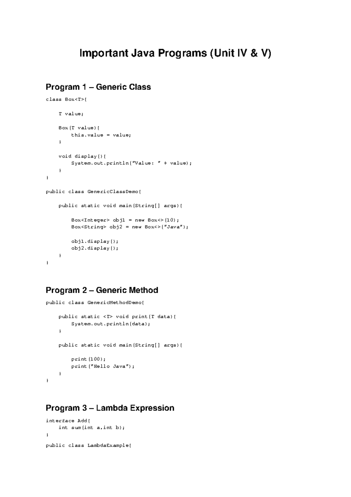 Java Unit IV & V: 10 Essential Programs for Understanding - Studocu