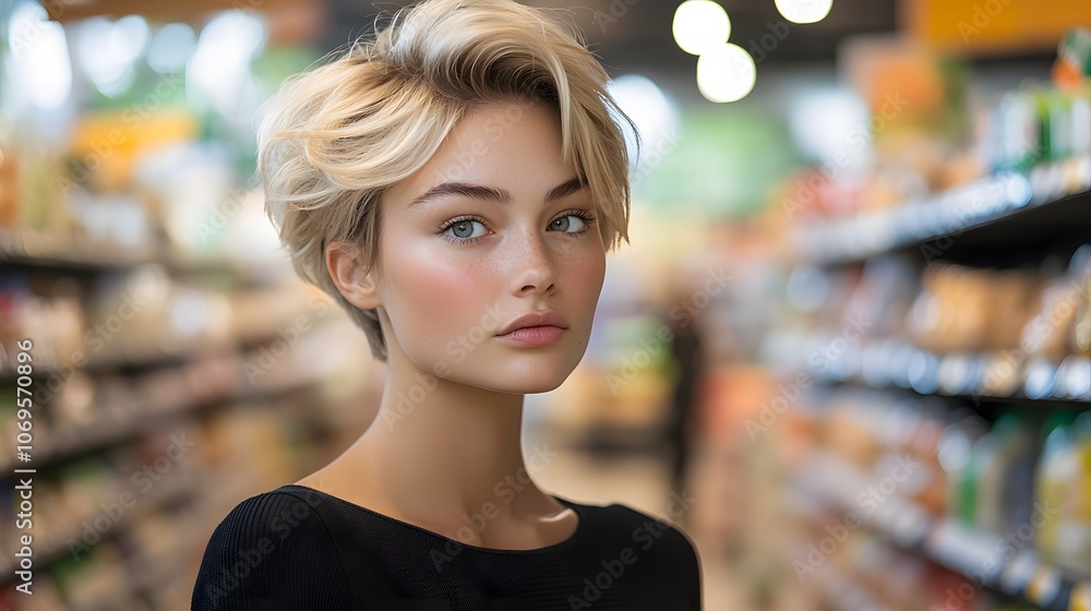 Premium Photo | Woman shopping for groceries in a crowded supermarket ...