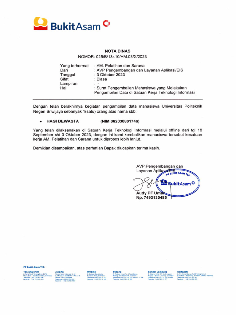 Nota Dinas Pengembalian Mahasiswa 03102023 | PDF