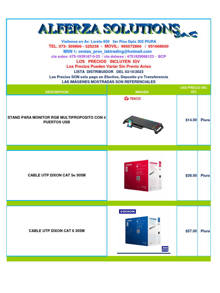 Lista de Precios 03102023 | PDF | Impresora (Computación) | Ingeniería ...