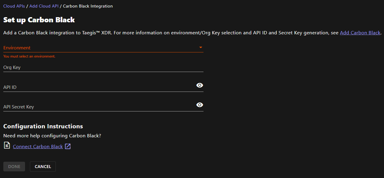 Add the Carbon Black Cloud Credentials to Epiphany | Technical ...