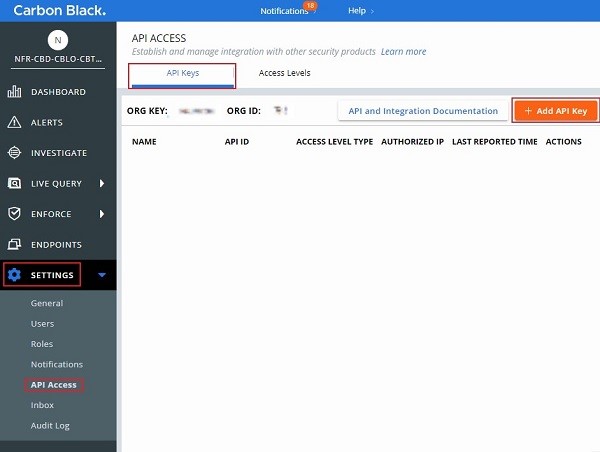 Generate a Carbon Black Cloud API Key | Technical Documentation