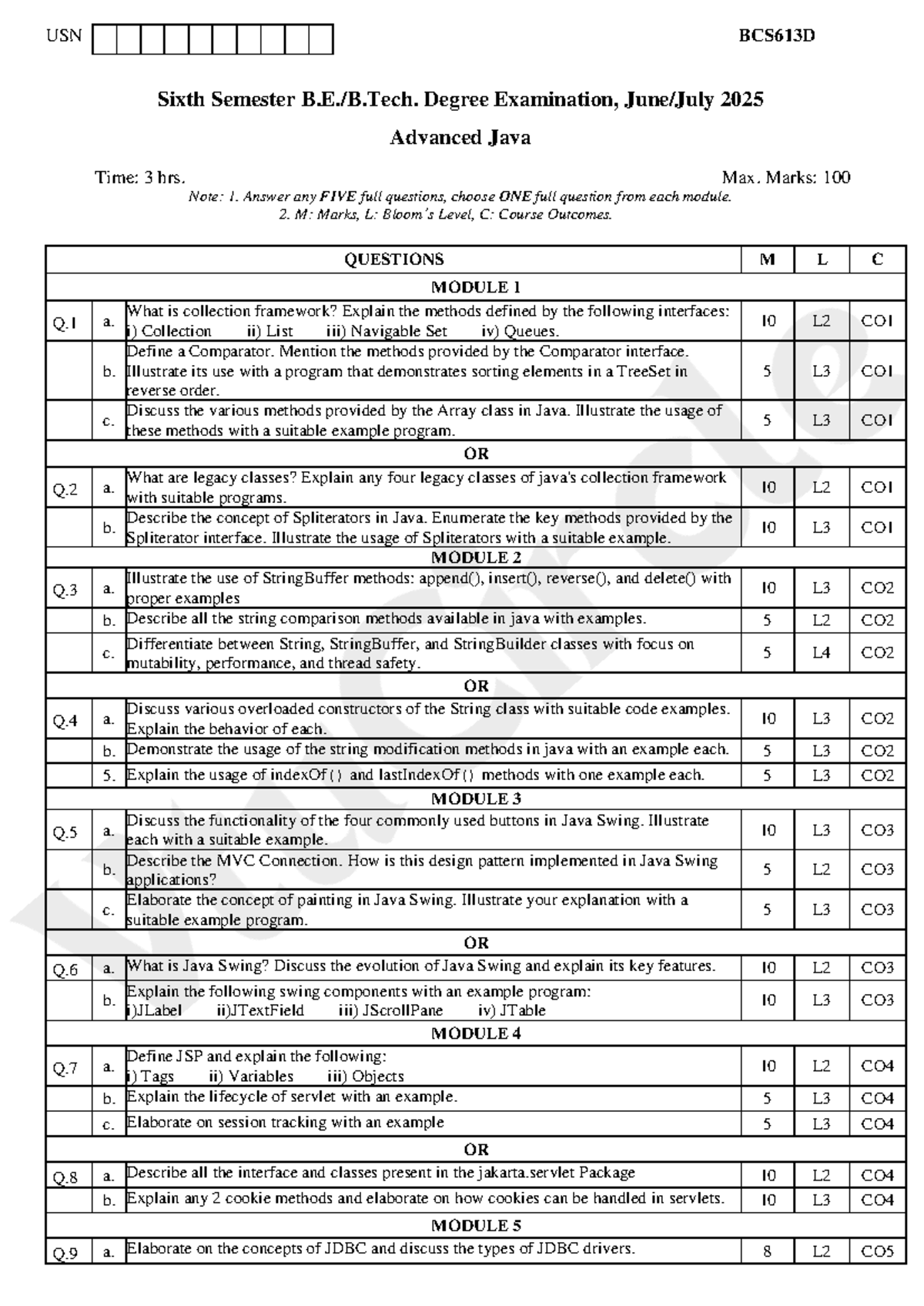 BCS613D Advanced Java Exam Questions - June/July 2025 - Studocu