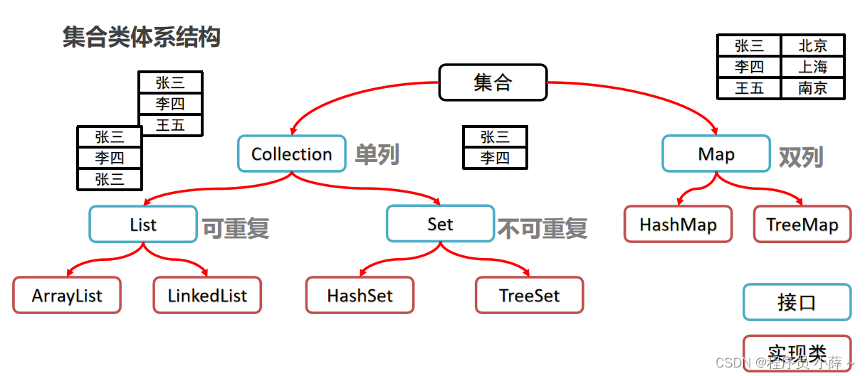 Java基础——Collection单列集合与Map双列集合总结_单列集合collection和双列集合map,都是接口,不能直接生成集合对象 ...