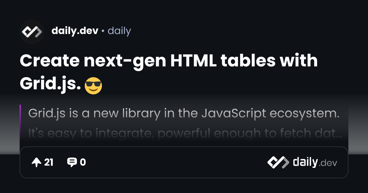 Create next-gen HTML tables with Grid.js. 😎 | daily.dev
