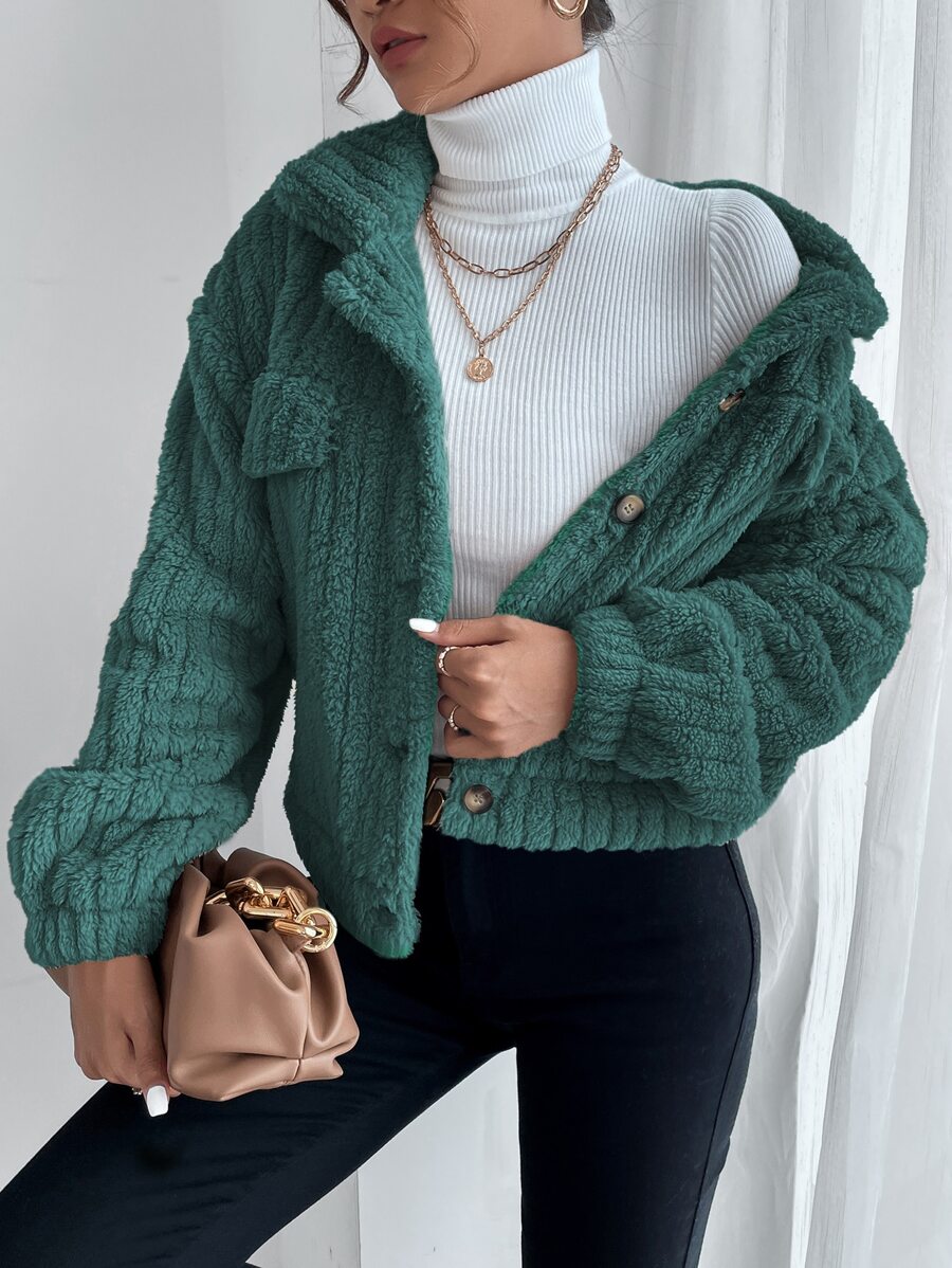 SHEIN Frenchy Drop Shoulder Button Front Flannel Jacket | SHEIN