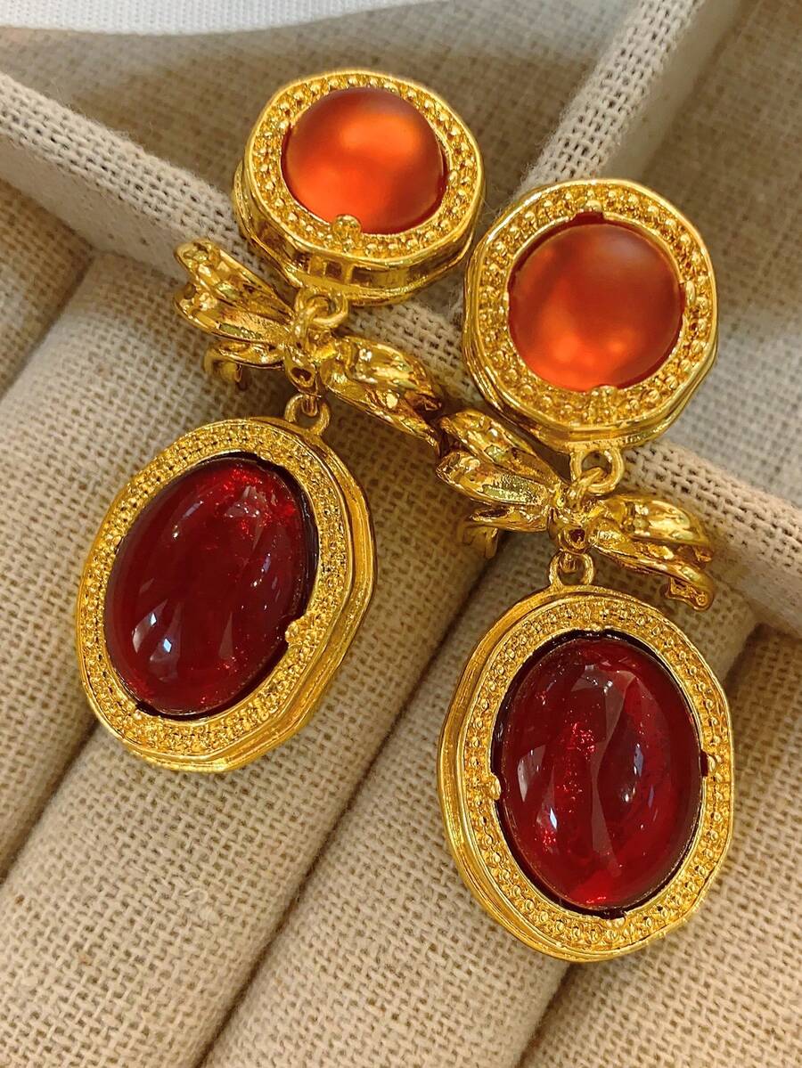 Vintage Red Glass Earrings, Beautiful Antique Renaissance Artistic ...