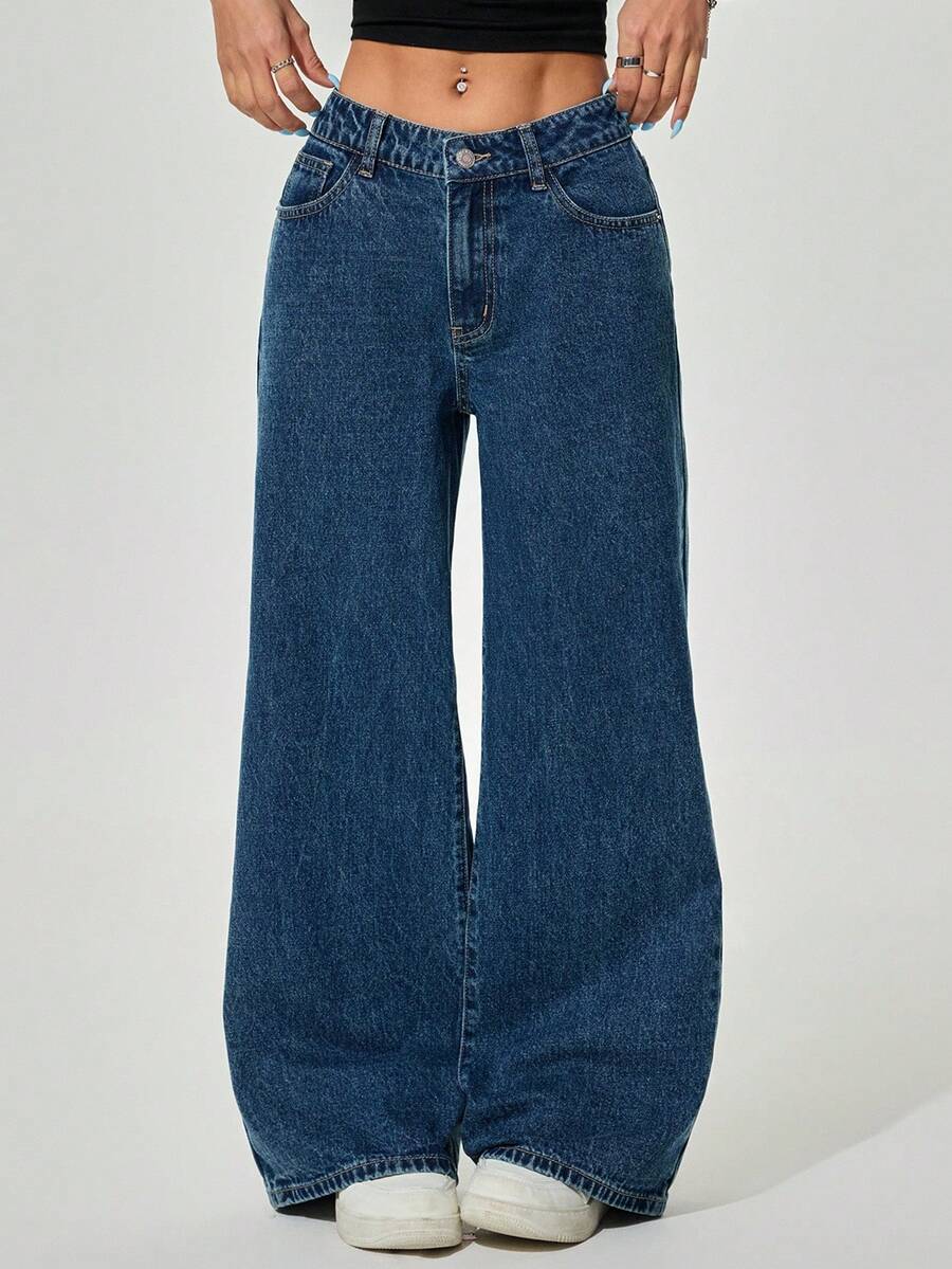 SHEIN PETITE Women's Casual Loose Pockets Denim Jeans | SHEIN UK