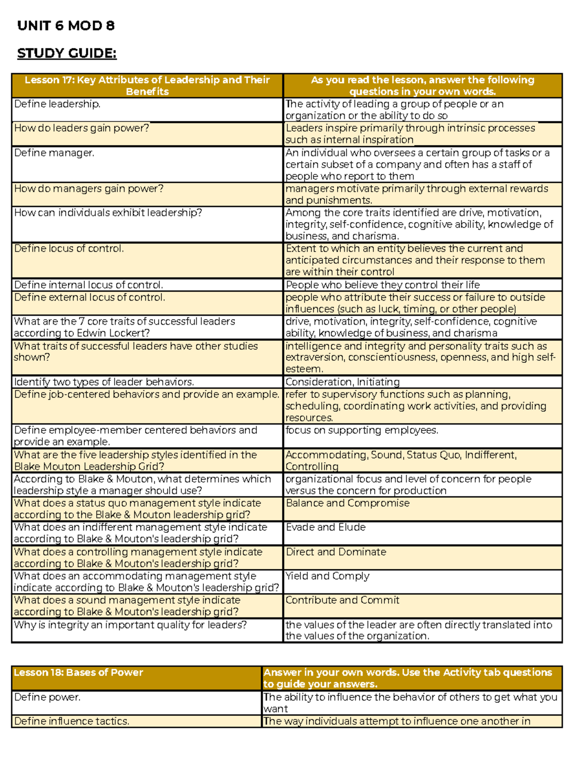 Notes UNIT 6 MOD 8 - n/a - UNIT 6 MOD 8 STUDY GUIDE: Lesson 17: Key ...