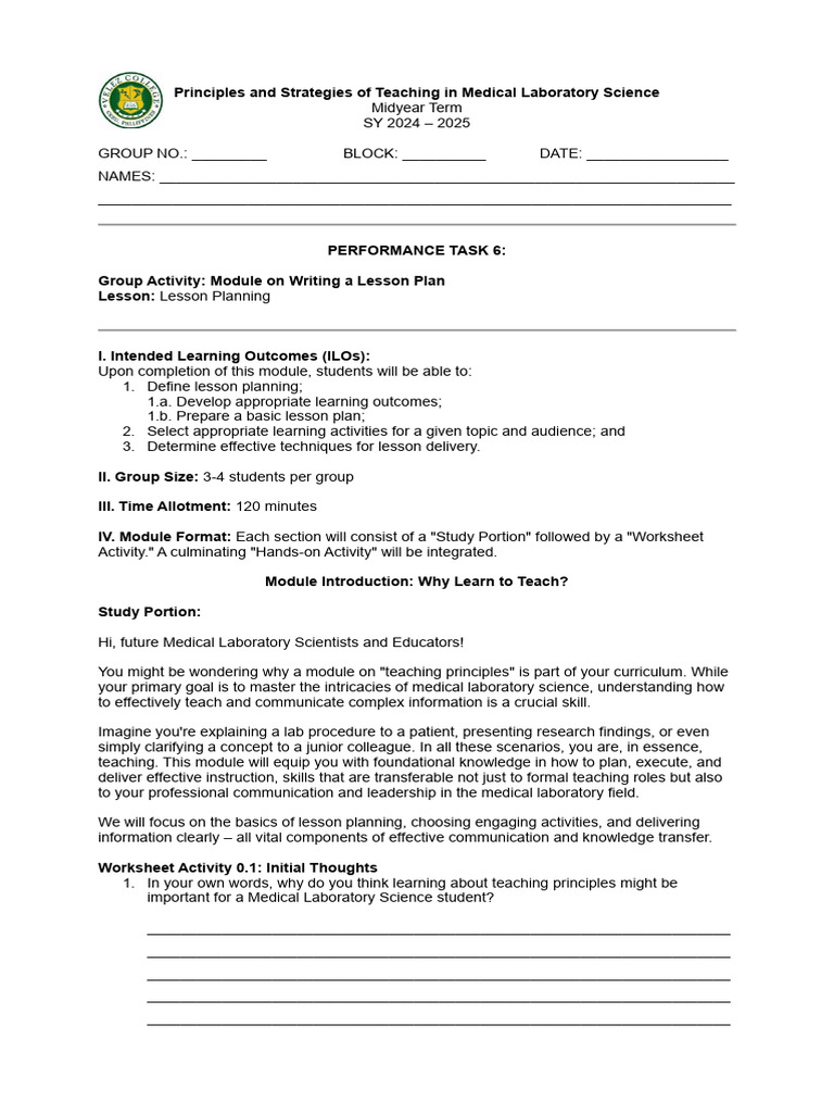 PSTMLS Lesson 6 Notes and Worksheets | PDF | Learning | Lesson Plan