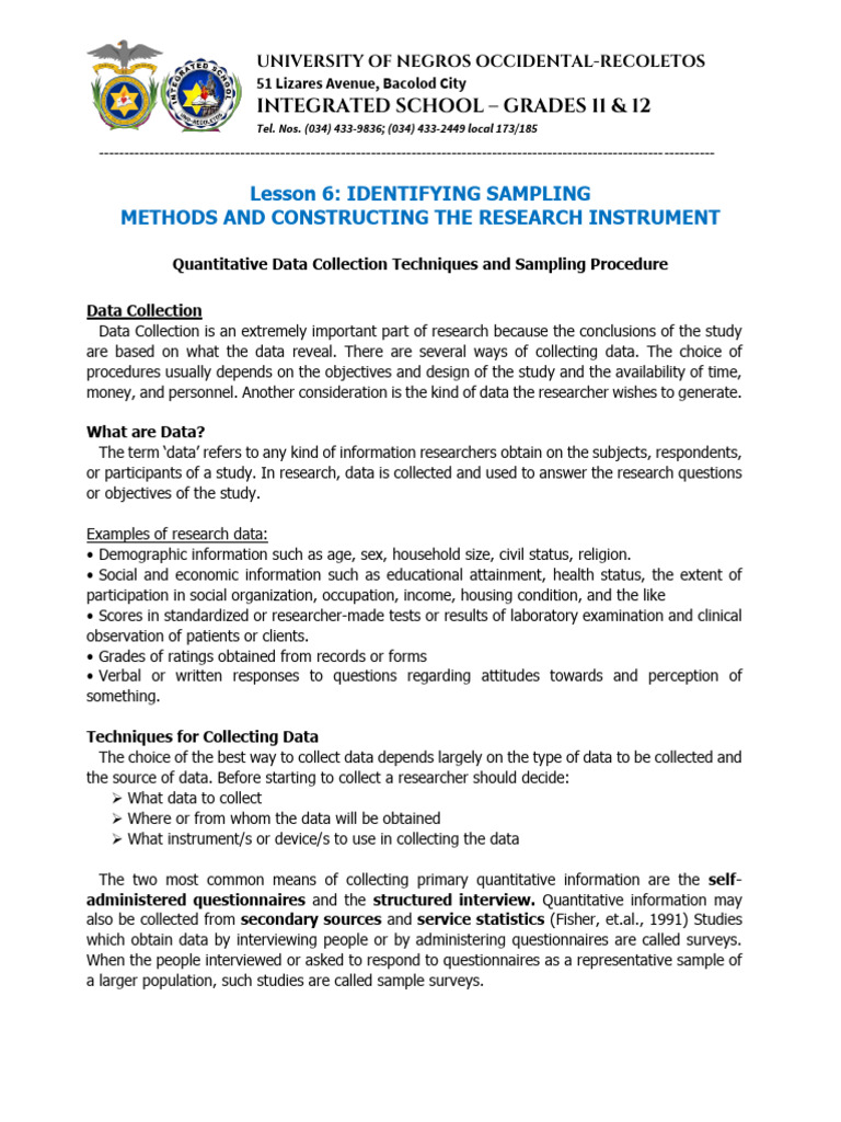 LESSON-VI.pdf - LESSON 6 Data Analysis Interpretation and Presentation ...
