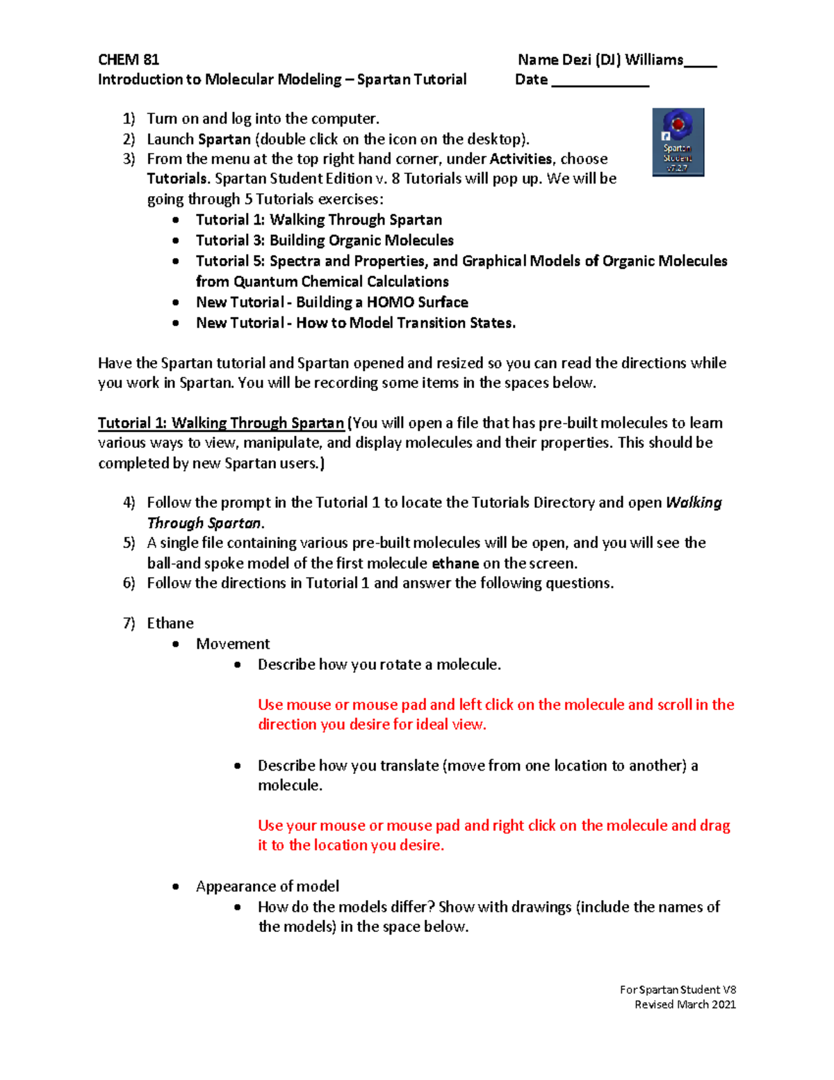 Chem 81 Intro to Molecular Modeling Activity Lecture notes - CHEM 81 ...