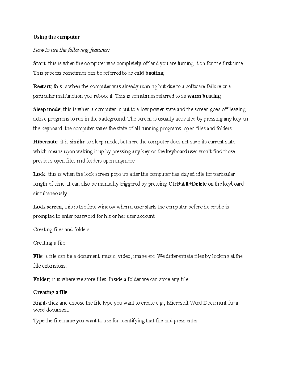 Use of the computer - Start, restart, hibernate, lock etc. are all ...