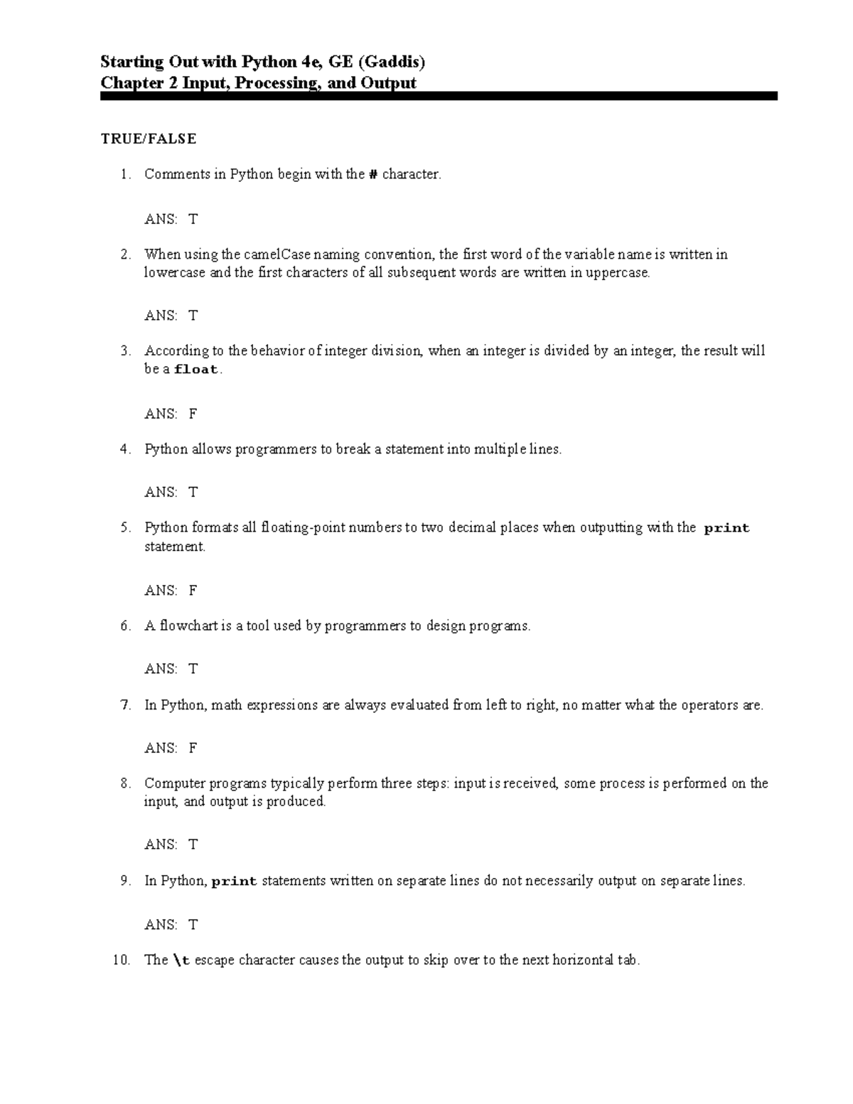 Python 4e Gaddis Chapter 2: Input, Processing, and Output Notes - Studocu