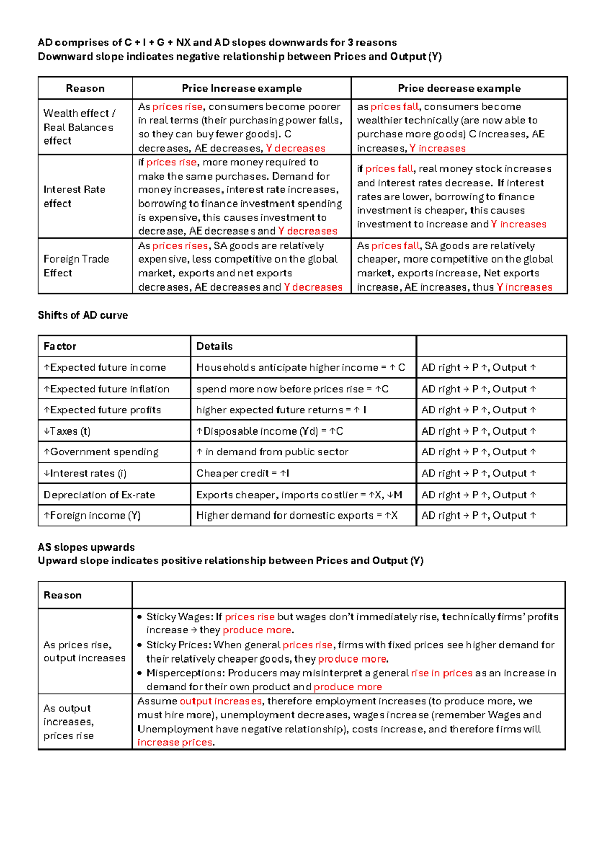 AS-AD Model Notes: Understanding Price-Output Relationships - Studocu