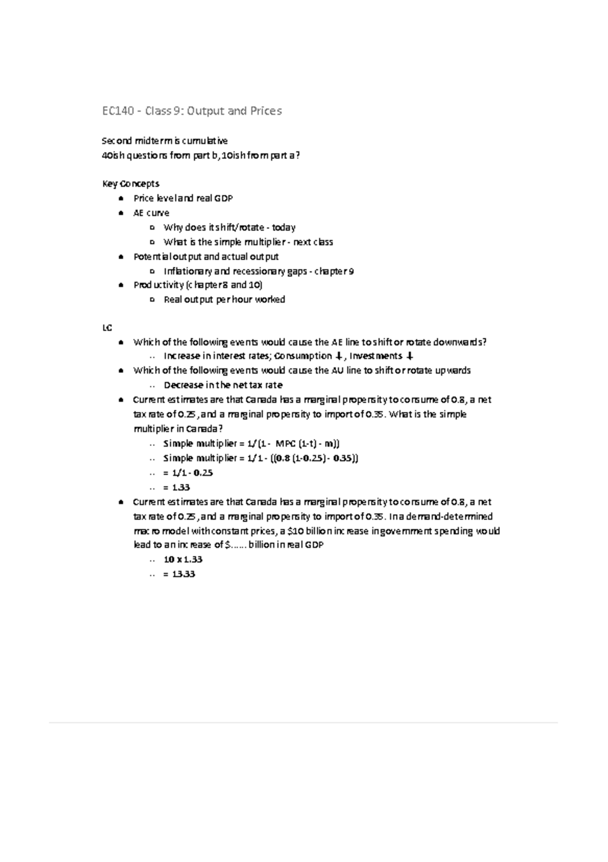 EC140 Midterm 1 Notes: Output, Prices, and Macroeconomic Concepts - Studocu