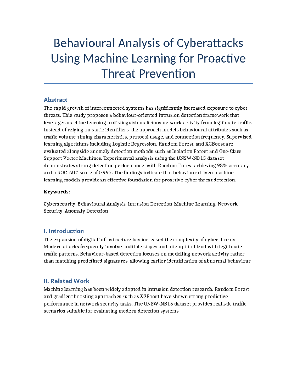 Behavioural Cyberattack Analysis: ML-Based Intrusion Detection - Studocu