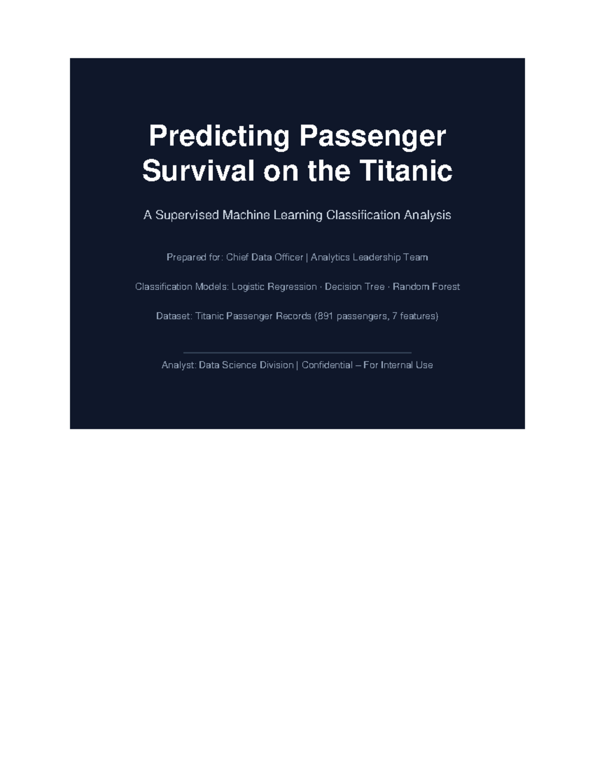 Titanic Survival Prediction Analysis: A Supervised ML Study - Studocu