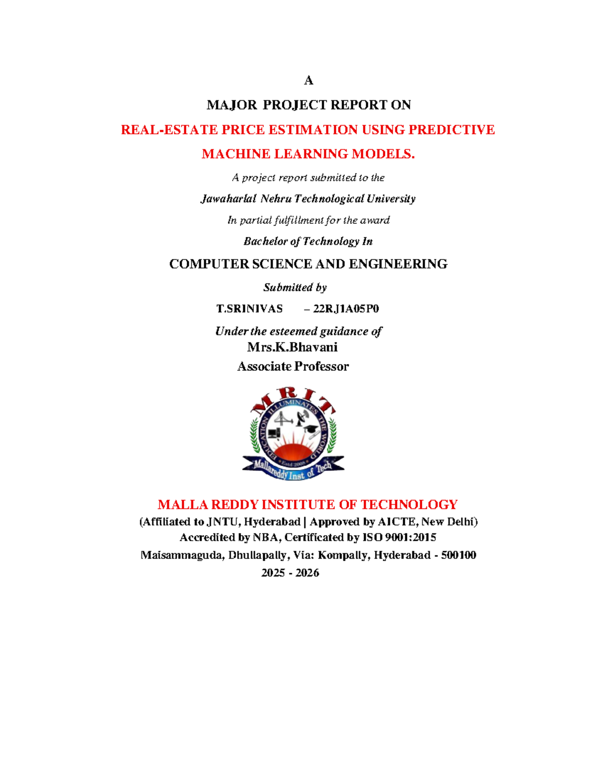 B.Tech Project Report: Price Estimation Using ML Models (CSE) - Studocu