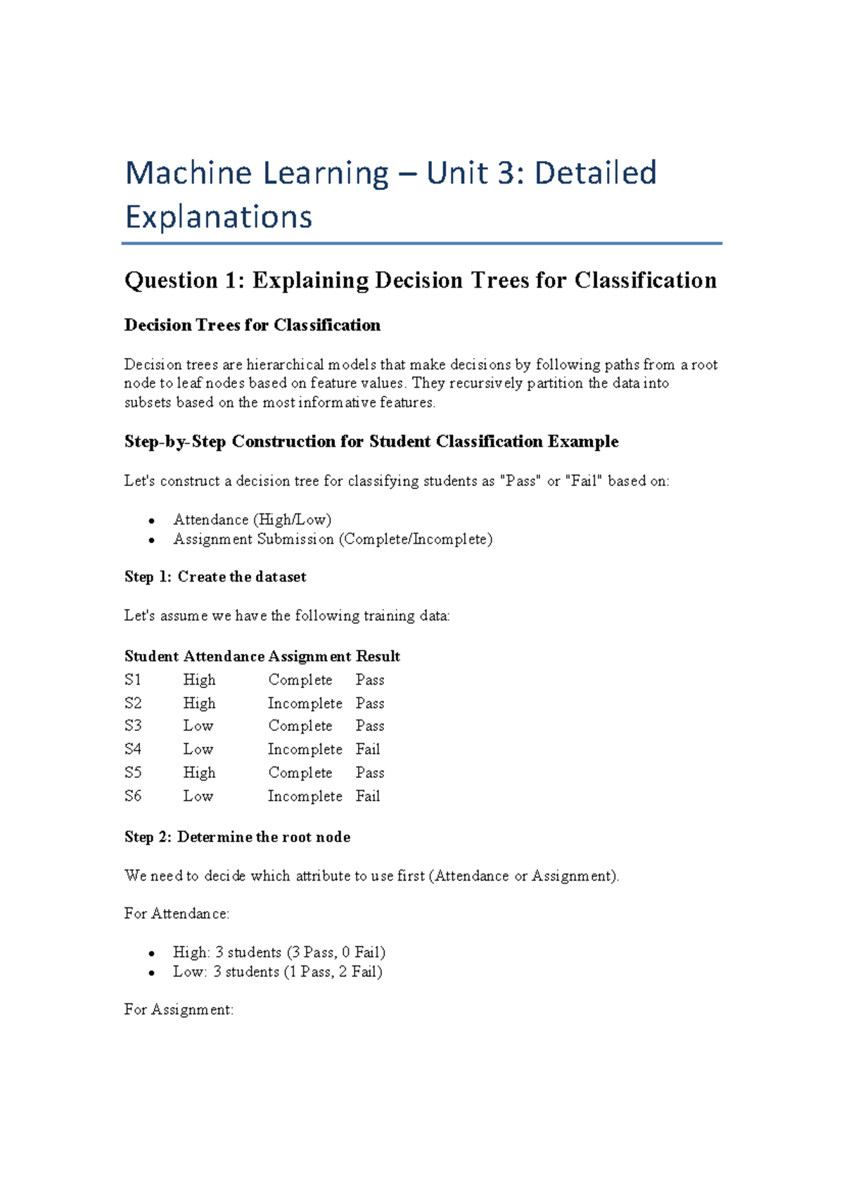 ML Unit 3: Decision Trees & Classifiers Detailed Explanations - Studocu