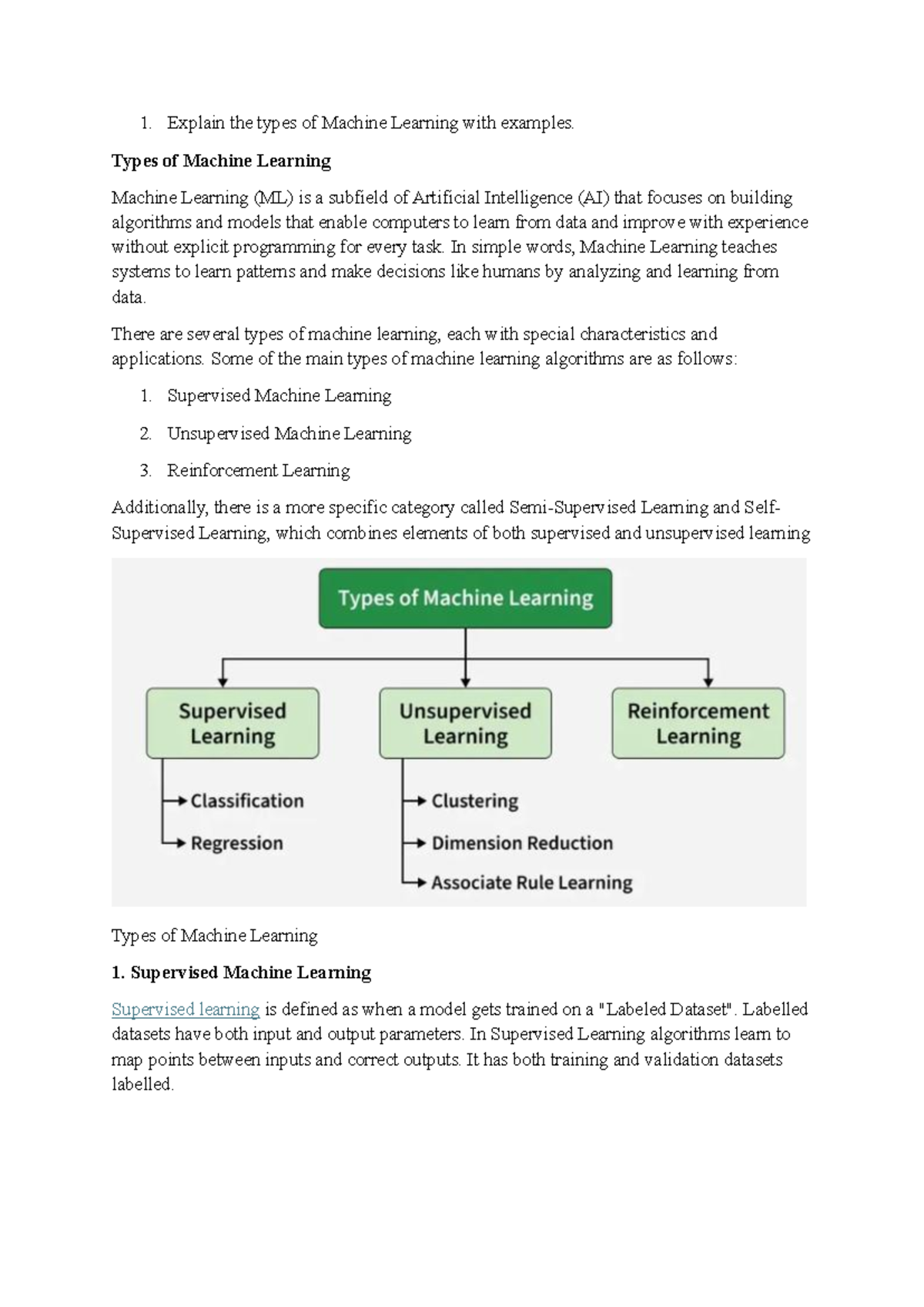Machine Learning (ML) Exam Review: Types, Models & Evaluation - Studocu