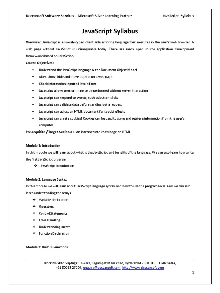 JAVASCRIPT Syllabus | PDF
