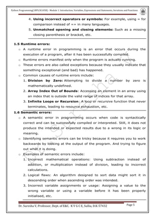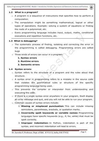 Module 1-Python prog.-BPLCK105B by Dr.SV.pdf | Programming Languages ...