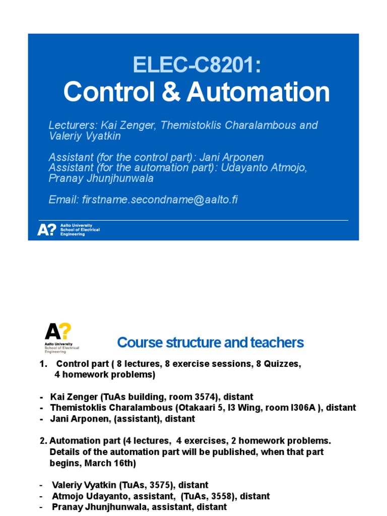 Control and Automation - Lecture 1A | PDF | Control Theory | Automation