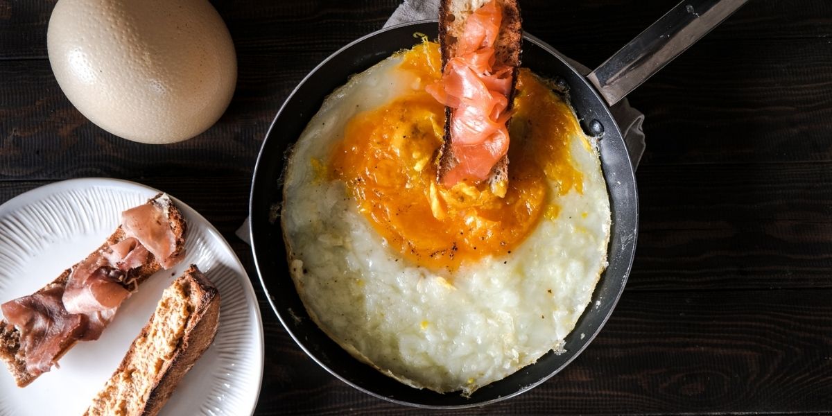 Oeuf d'autruche sur le plat - recette blog Pourdebon.com