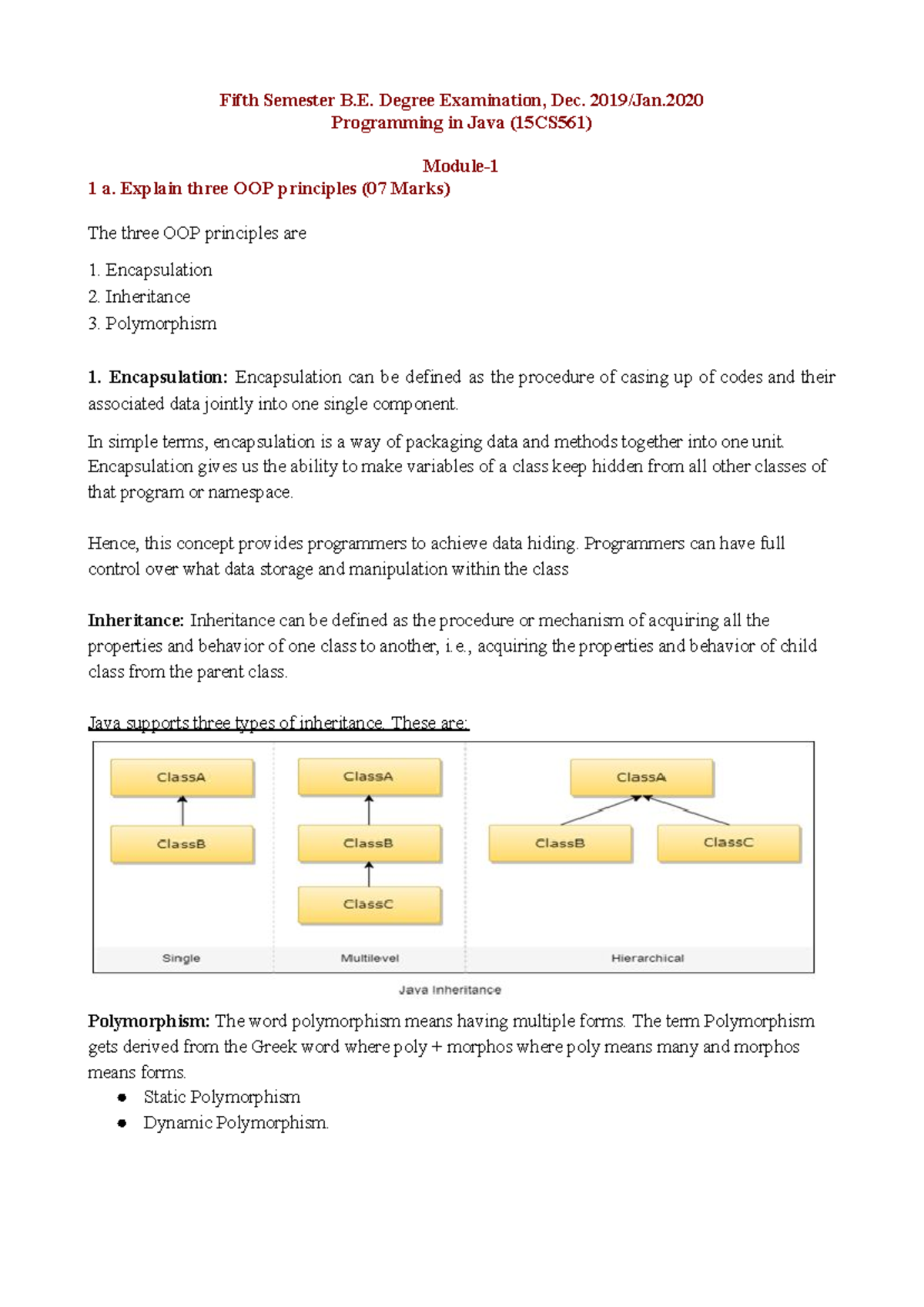 Java 2024 PYQ: Key Concepts and Code Examples in Java Programming - Studocu