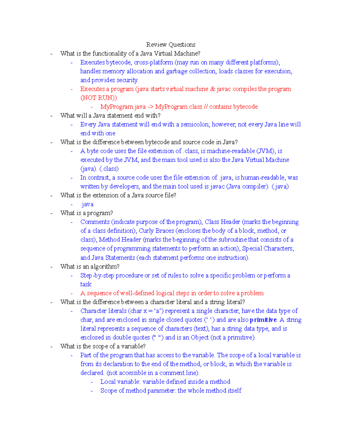 JAVA Important Questions and Answers - CS101 Final Exam Review - Studocu