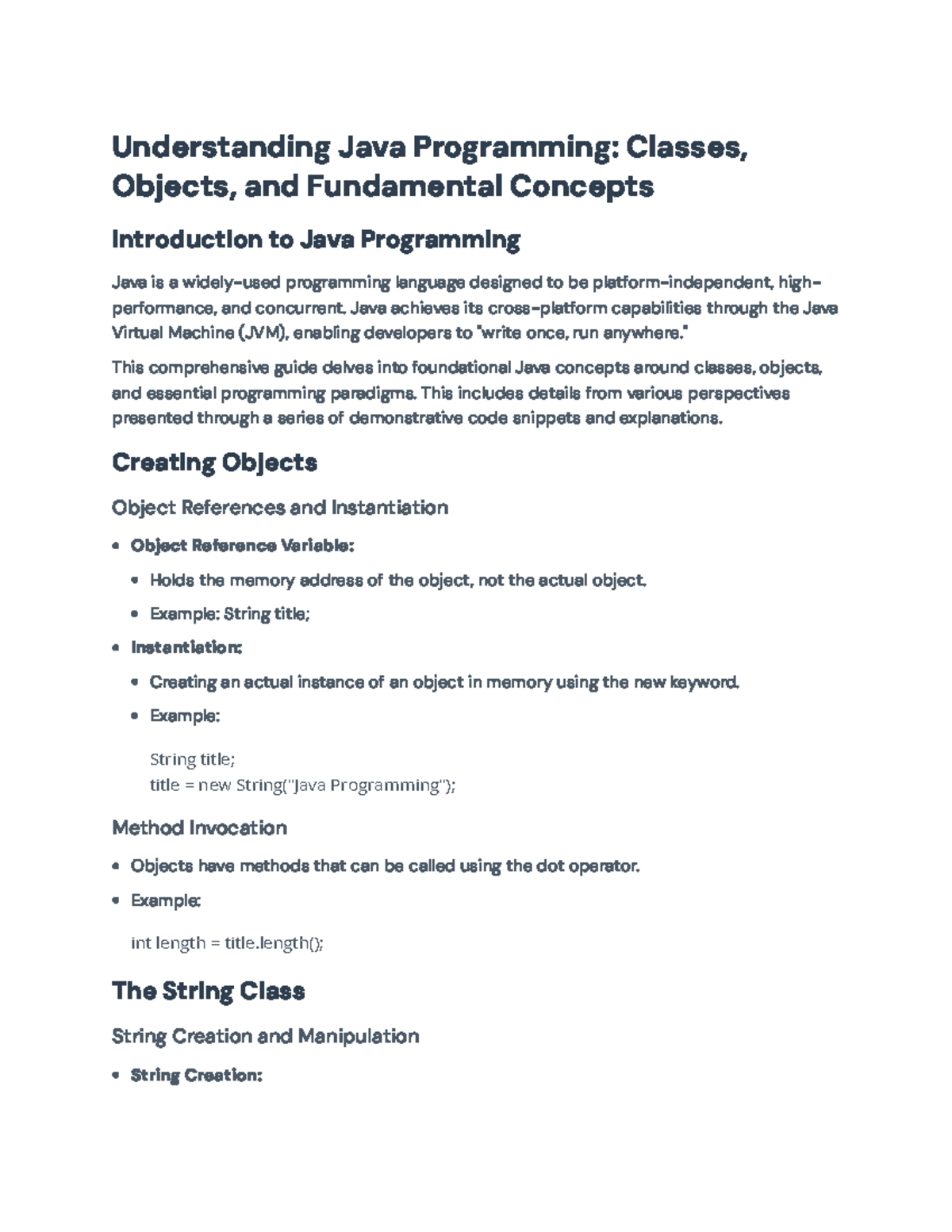 A Comprehensive Overview of Key Java Concepts Including Its ...