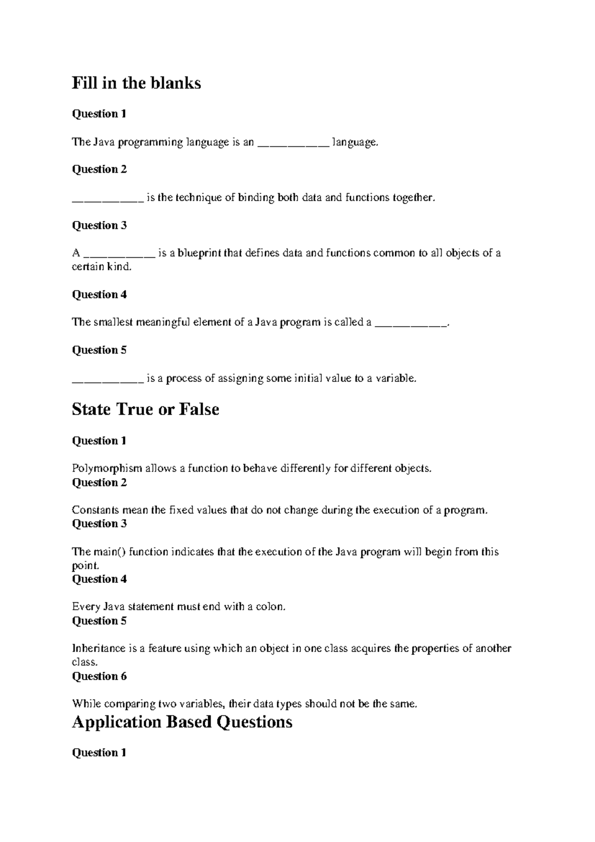 IMP Questions - Java Programming Concepts and Examples - Studocu