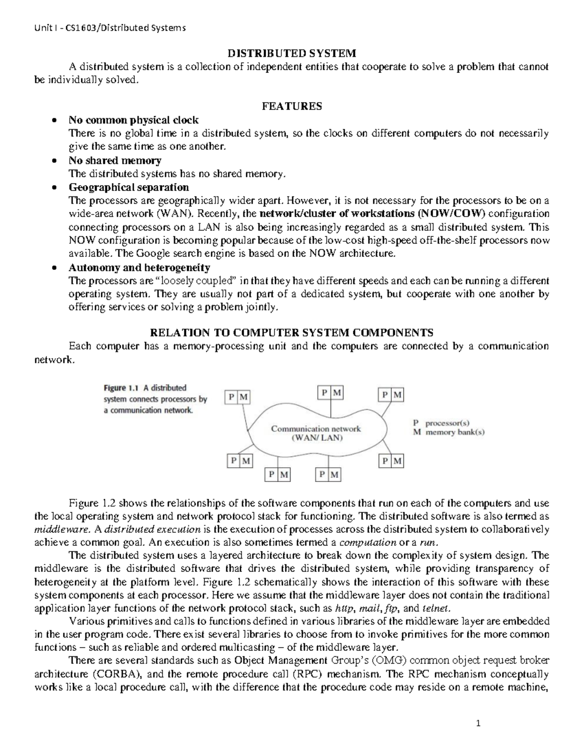 Unit I: Overview of Distributed Systems and Their Features - Studocu