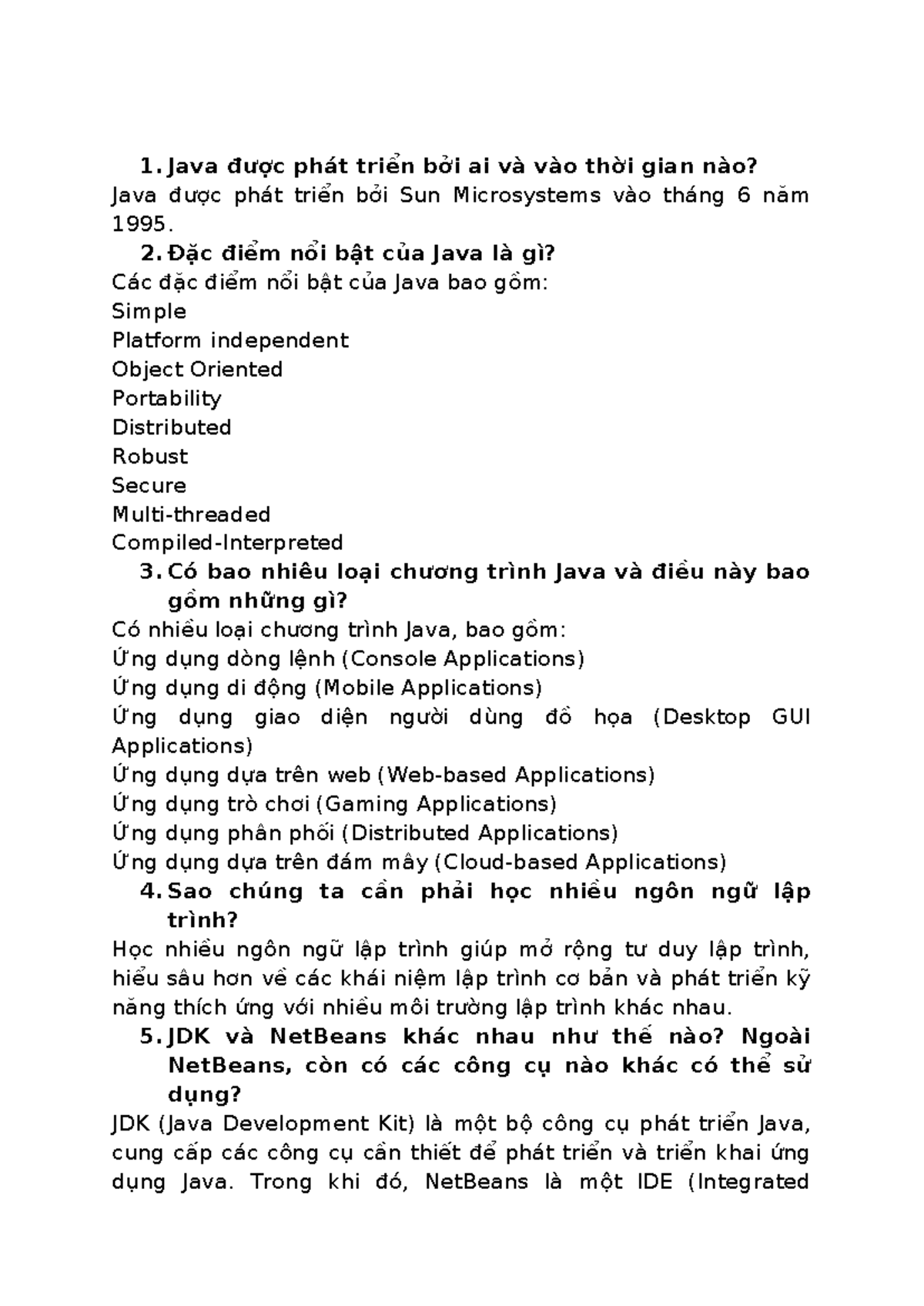Java Interview Questions & Answers: Key Concepts and Features - Studocu