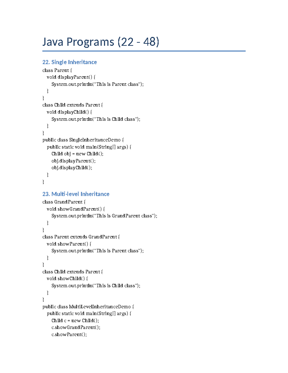 Java Programs (22-48) - Code Examples and Implementations - Studocu