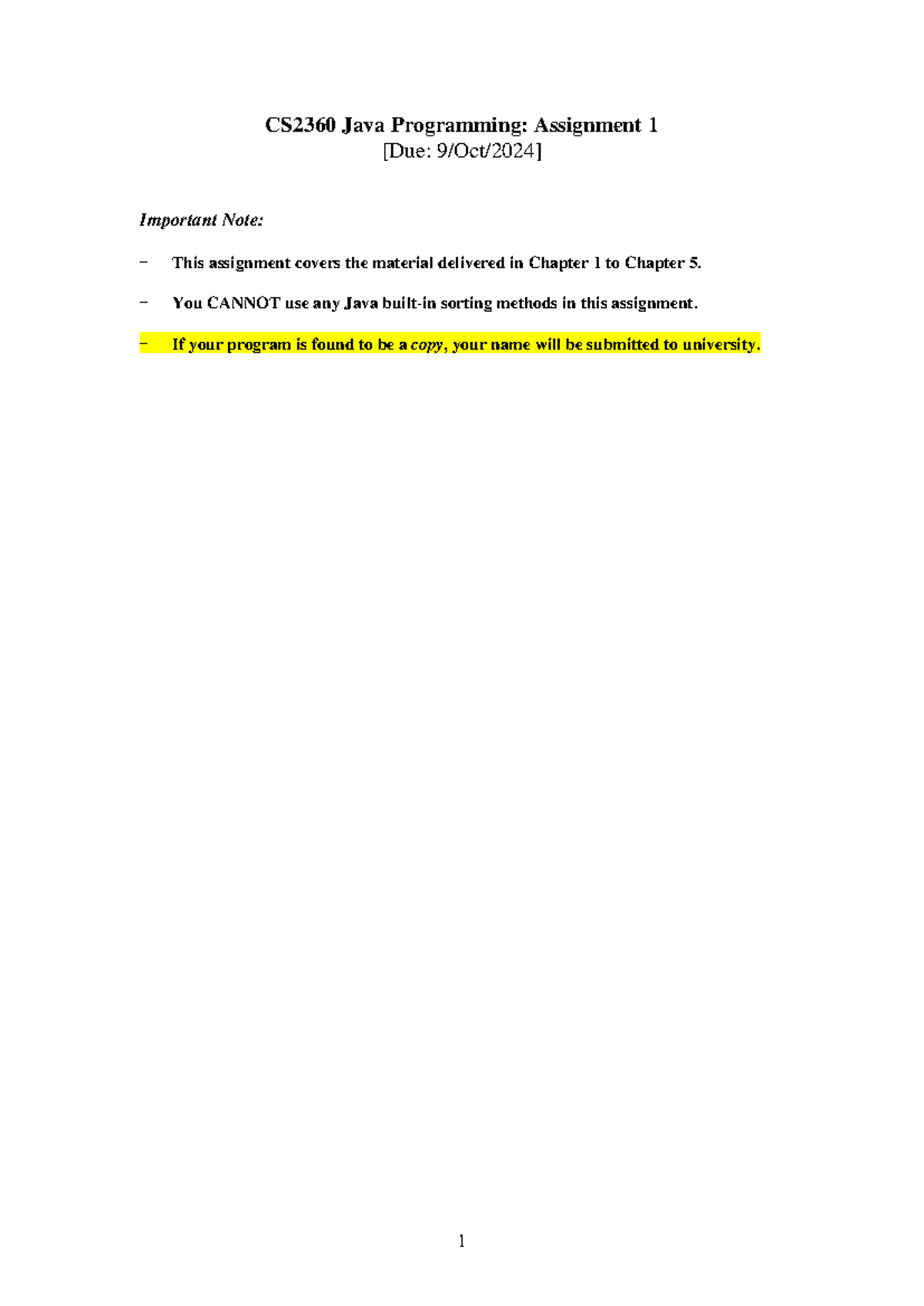CS2360 Java Programming: Assignment 1 Guidelines & Requirements - Studocu